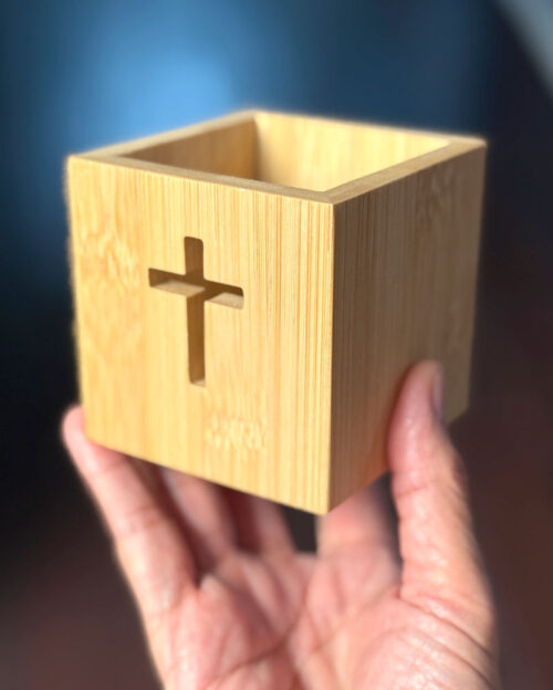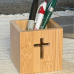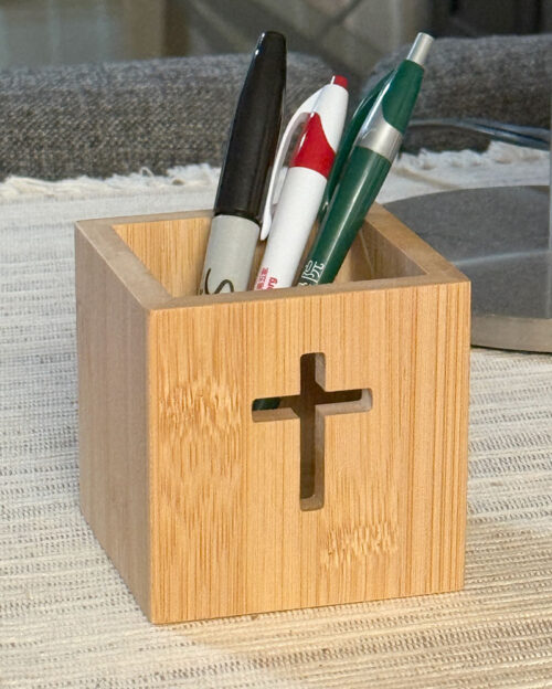This pen holder is crafted from natural bamboo, featuring a simple yet elegant design. The front of the holder is carved with a clean cross cutout, symbolizing Christ’s love and redemption. More than just a tool to organize your pens, stationery, or small items, it serves as a daily reminder of your faith.