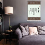 作品採用 polyester 數位印刷 製作,字跡清晰細膩、色彩持久不褪。上下配有 白色軸頭,可選擇 吊繩或掛鉤 兩種懸掛方式,安裝方便,適合各種空間風格。